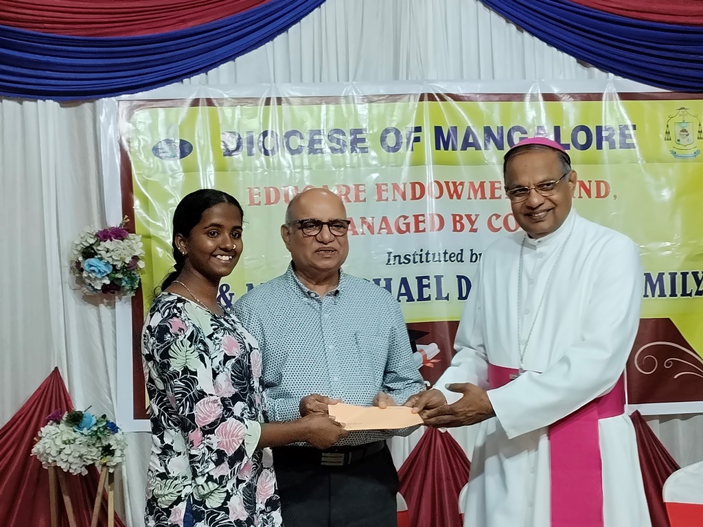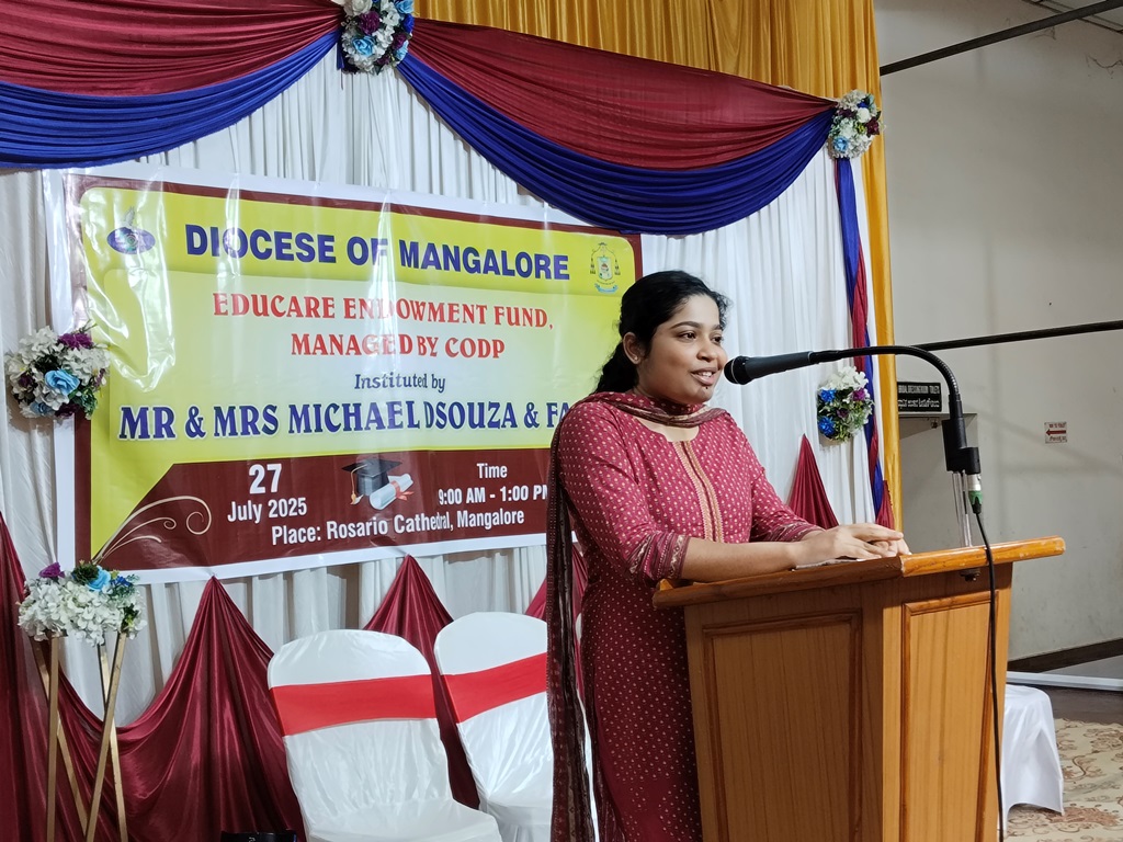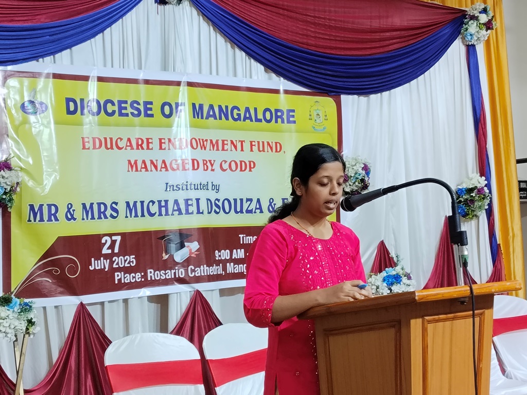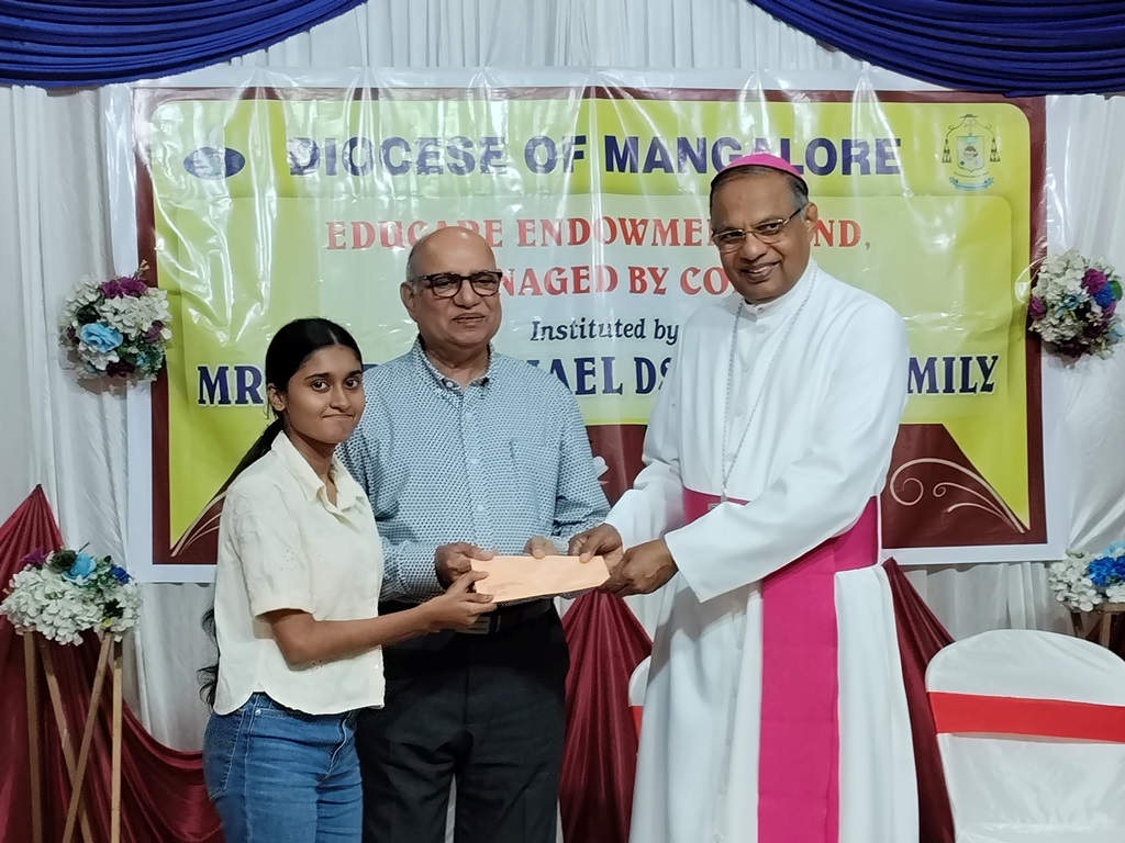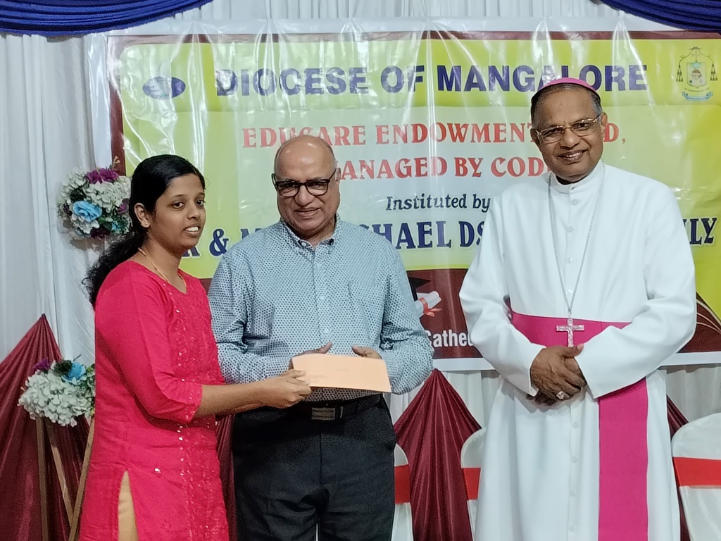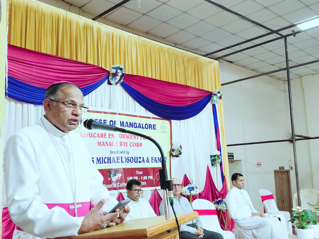 Mangaluru, July 27, 2025 – “Gratitude is the best attitude. Never forget the sacrifices of your parents, the support of your teachers, and the guidance of your priests. You are the shining stars of the Mangalorean Konkani Catholic community, known globally for its talent and generosity,” said Most Rev. Dr. Peter Paul Saldanha, Bishop of Mangalore, as he addressed scholars and their parents at the symbolic distribution ceremony of the Educare interest-free loan scholarship. The event was held at Rosario Cathedral and organized by the Catholic Organization for Development and Peace (CODP), Diocese of Mangalore.
