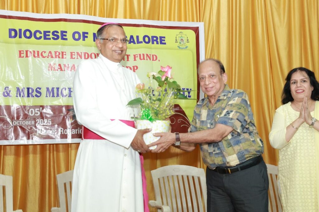 The programme was presided over by Dr Peter Paul Saldanha, bishop of Mangalore diocese. In his presidential address, the bishop elaborated on the vision, purpose, and significant achievements of the Educare Endowment Fund. He expressed heartfelt gratitude to Michael D’Souza and family for their unwavering generosity and commitment to the cause of education. The event was graced by Sylvia D’Souza and Vincent D’Silva as chief guests.