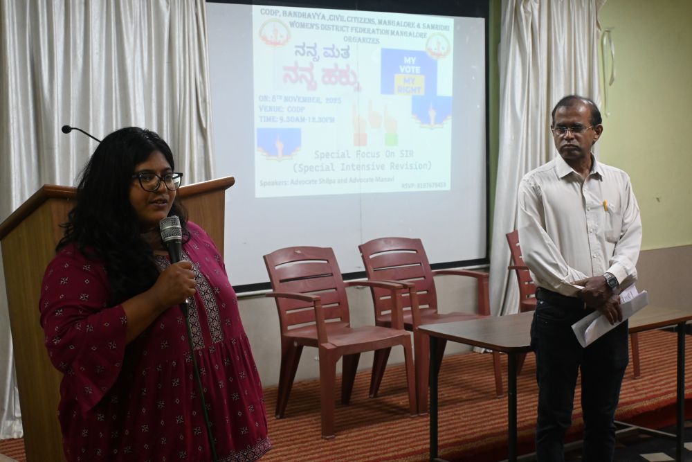 CODP, Bandhavya, Civil Citizens, Mangalore, and Samridhi Women’s District Federation, Mangalore jointly organized a seminar on “My Vote My Right” on 6th November 2025 at CODP Mother Teresa Hall. The seminar had a special focus on SIR (Special Intensive Revision).